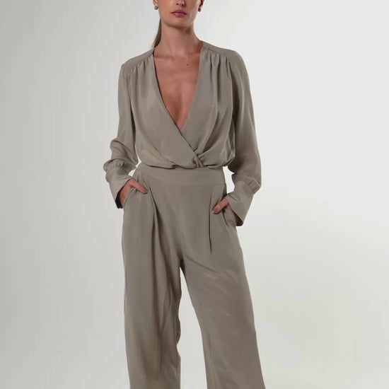 O Body Siena é confeccionado em seda crepe de chine, que traz atemporalidade e sofisticação.