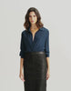 CAMISA CLÁSSICA PESPONTO MADRE REINA SEDA AZUL MARINE
