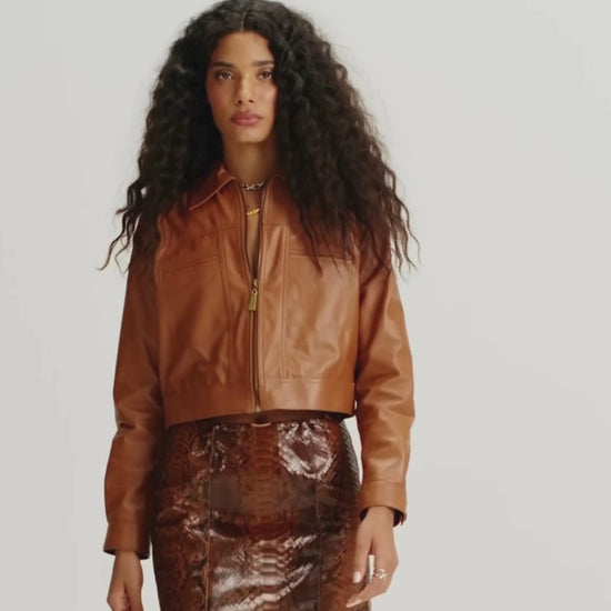 JAQUETA MEL MADRE REINA COURO CARAMELO