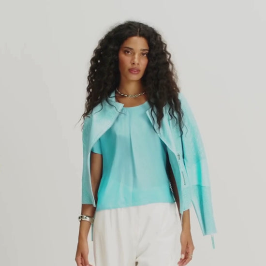 JAQUETA SUMMER MADRE REINA COURO AZUL TURQUESA